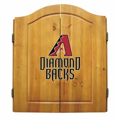 Show your Diamondbacks pride with this officially licensed dart cabinet. A perfect gift for any fan! The cabinet is solid pine and contains six steel darts, bristle board, chalk and eraser.