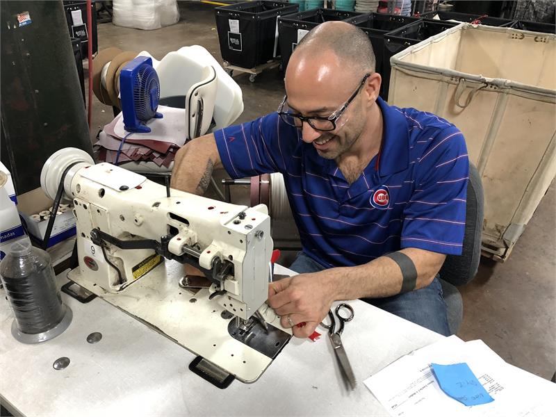 This is the 30 inch Donut Bar Stool. It is proudly built in the USA by Union upholsterers and Union wood workers. In fact, it this bar stool is built only 3 miles away from Northerly Island and Soldier Field. The donut image is printed under the vinyl so you never have to worry about it scratching off.