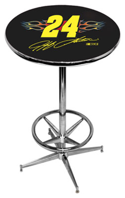 We carry the officially licensed Jeff Gordon Pub Table. Get into the race with our line of NASCAR pub tables. Our tables are perfect for your game room, garage, or kitchen. Our Dale Jr table is 43" tall and has a 27" diameter. The colors and logos are digitally printed onto a high pressure laminate