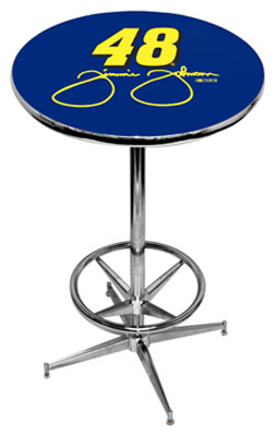 We carry the officially licensed Jimmie Johnson Pub Table. Get into the race with our line of NASCAR pub tables. Our tables are perfect for your game room, garage, or kitchen. Our Dale Jr table is 43" tall and has a 27" diameter. The colors and logos are digitally printed onto a high pressure laminate