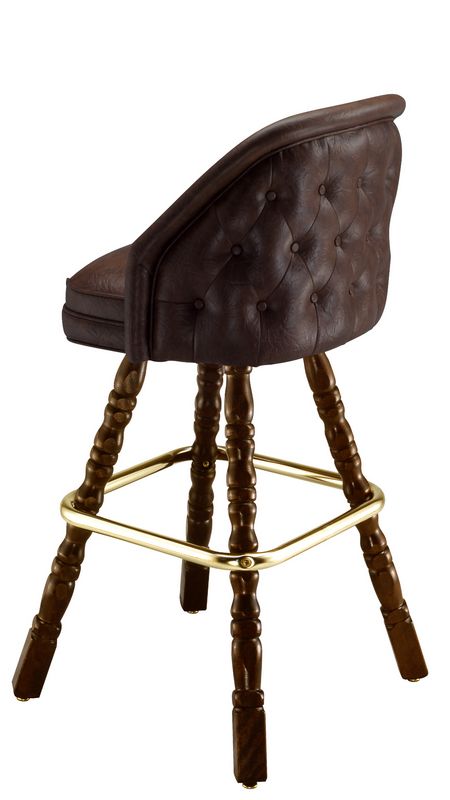 Our extra-wide bucket seat with exterior button tufting and rolled edge makes the Matagordo Bar Stool a perfect addition to your bar. Our "Western" hand-turned walnut finish hardwood frame and 90 degree auto return swivel complete this luxury bar lounger. A brass foot rest completes the look. Made in the USA.