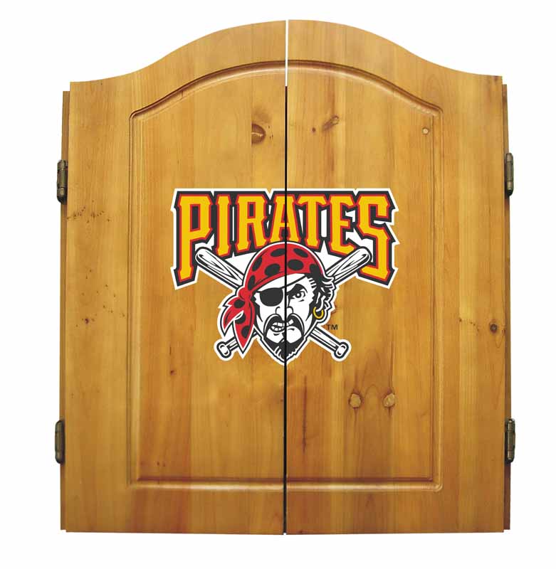 Show your Pirates pride with this officially licensed dart cabinet. A perfect gift for any fan! The cabinet is solid pine and contains six steel darts, bristle board, chalk and eraser.