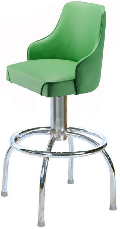 Our bucket bar stool with arms gets a retro upgrade on our umbrella "Roswell" column frame. The all-welded steel frame brings a swinging 60's vibe to your diner, restaurant, bar, or home. Seat has a 360 degree swivel with a 3 degree pitch for comfort.