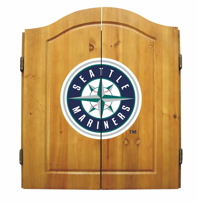 Show your Mariners pride with this officially licensed dart cabinet. A perfect gift for any fan! The cabinet is solid pine and contains six steel darts, bristle board, chalk and eraser.