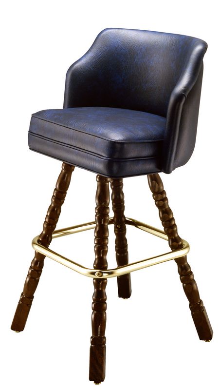 Our Snohomish stool adds our extra-wide deluxe bucket with our hand-turned wood bar stool. For the seat we use a hand-upholstered luxury bucket featuring a deeply padded seat. The base is made of hand-turned wood done with a walnut finish. The look is rich, luxurious, and solid. This bar stool comes standard with a 3 degree automatic return swivel. A brass foot rest completes the look. Made in the USA.